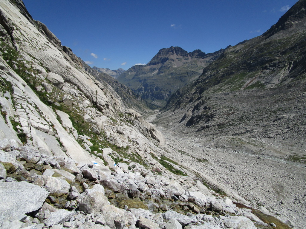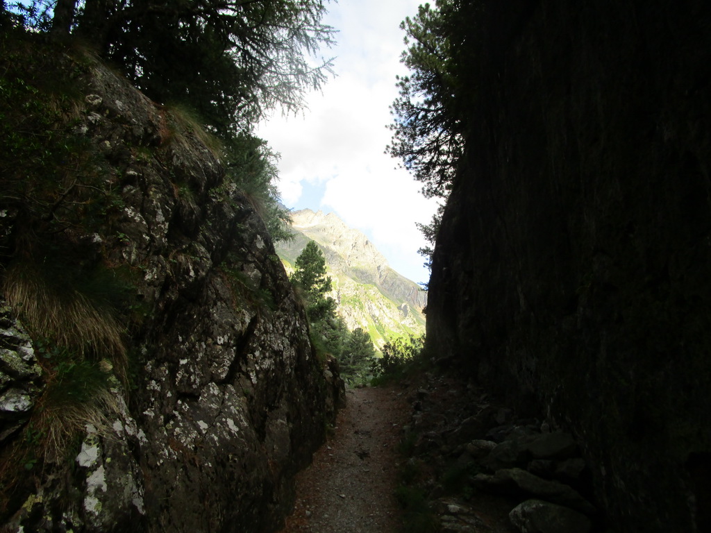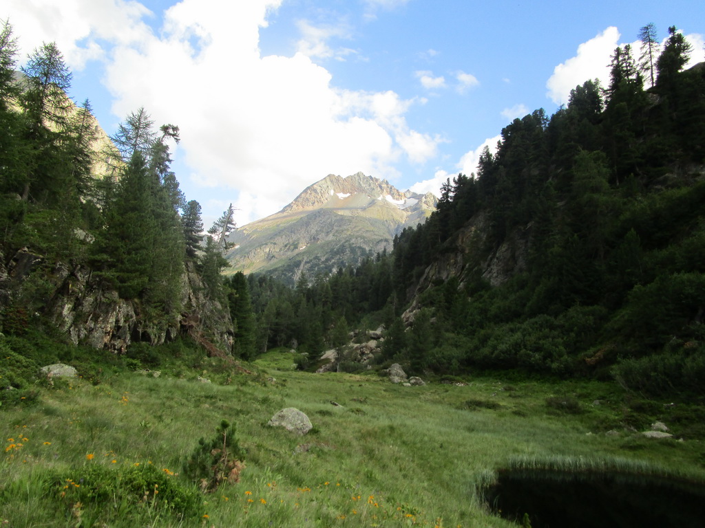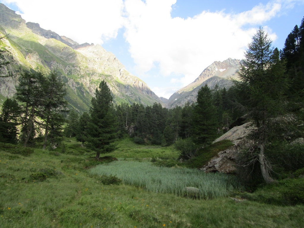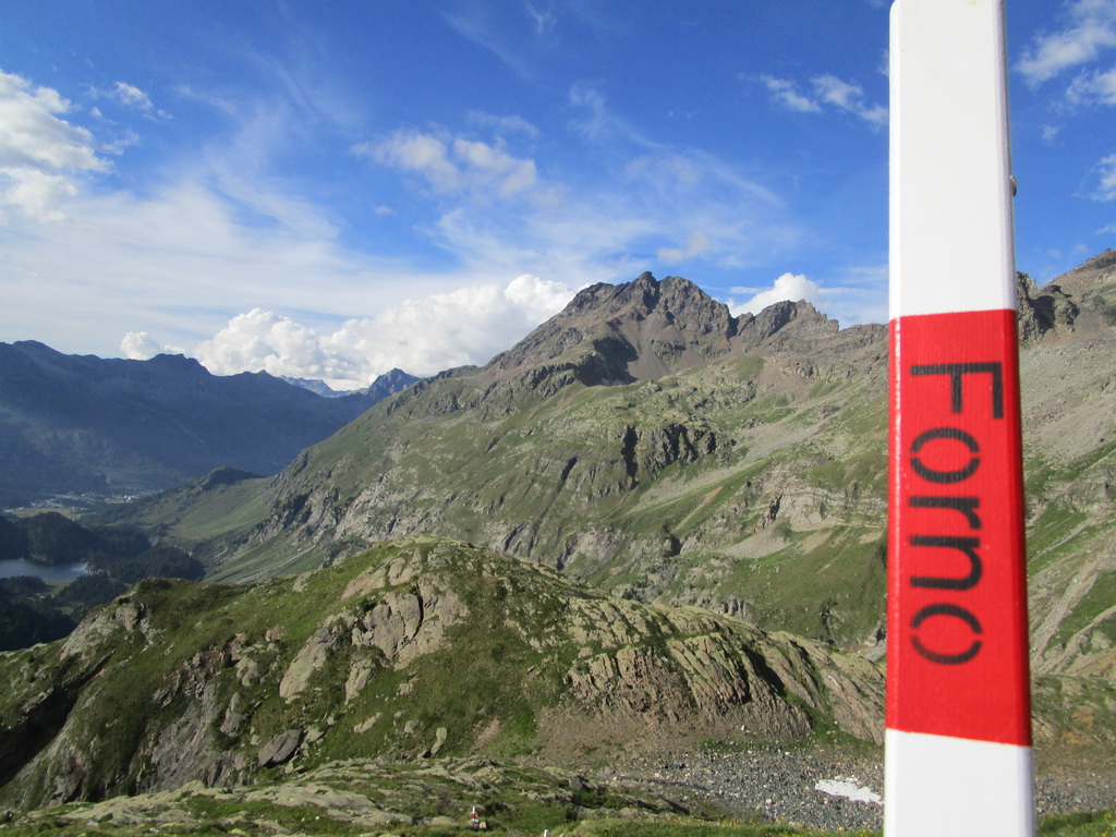 Pokračujem ďalej okolo miestneho hospodárstva so zvieratkami rôznych druhov. V týchto miestach vedie chodníček nádherným alpským lesom s lúčkami a mokraďami. Z lesa sa vynáram pri odbočke na passo Muretto. Tu les pomaly končí. Pokračujem doprava smerom do Val Forno. Neskôr sa napájam na nový a čerstvo značený chodník vedúci do sedla Casnil Sud. Chatár z Fornohutte Beat tu s pomocou pár kamarátov urobil veľký kus práce. Preložili starý chodník a z veľkej časti vytvorili nový.