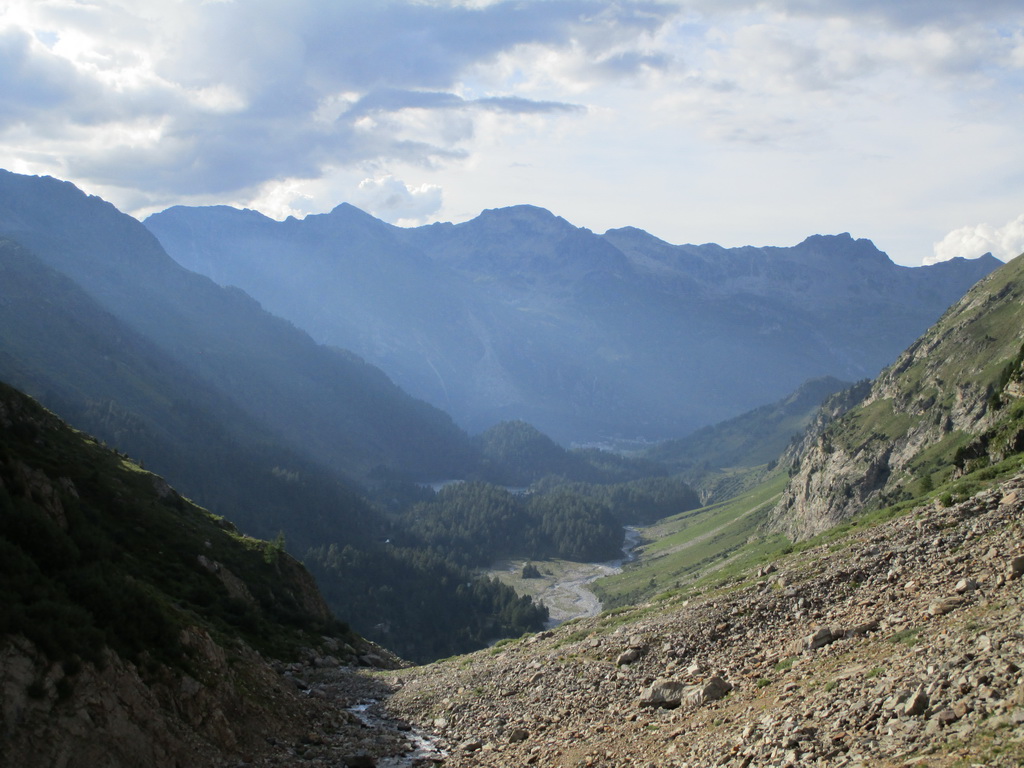 Zostúpim na začiatok hrebeňa ktorým som liezol hore do tzv. Pass Casnil Nord. Odtiaľto by bolo výhodné zbehnúť rovno dole do doliny čo sa mi aj darí...