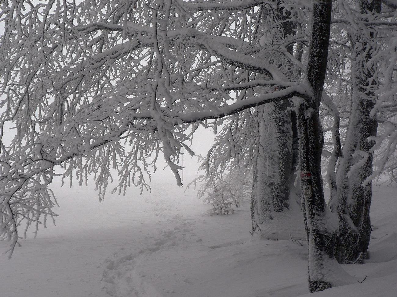 Na raňajky chlieb so syrom, jogurt, mlieko – nech si od tých mliečnych výrobkov neodvykám. Lebo viem, čo ma asi zasa čaká. O dve hodinky teda skáčem z busu na Donovaloch do lyží a do polotučnej hmly. O chvíľu, vyššie na Polianke, už je plnotučná, ale sú tu ešte domy a za rampou stromy, to sa ešte dá. Koľkokrát som tadeto už išiel... Ale ani raz týmto smerom, sranda :-)