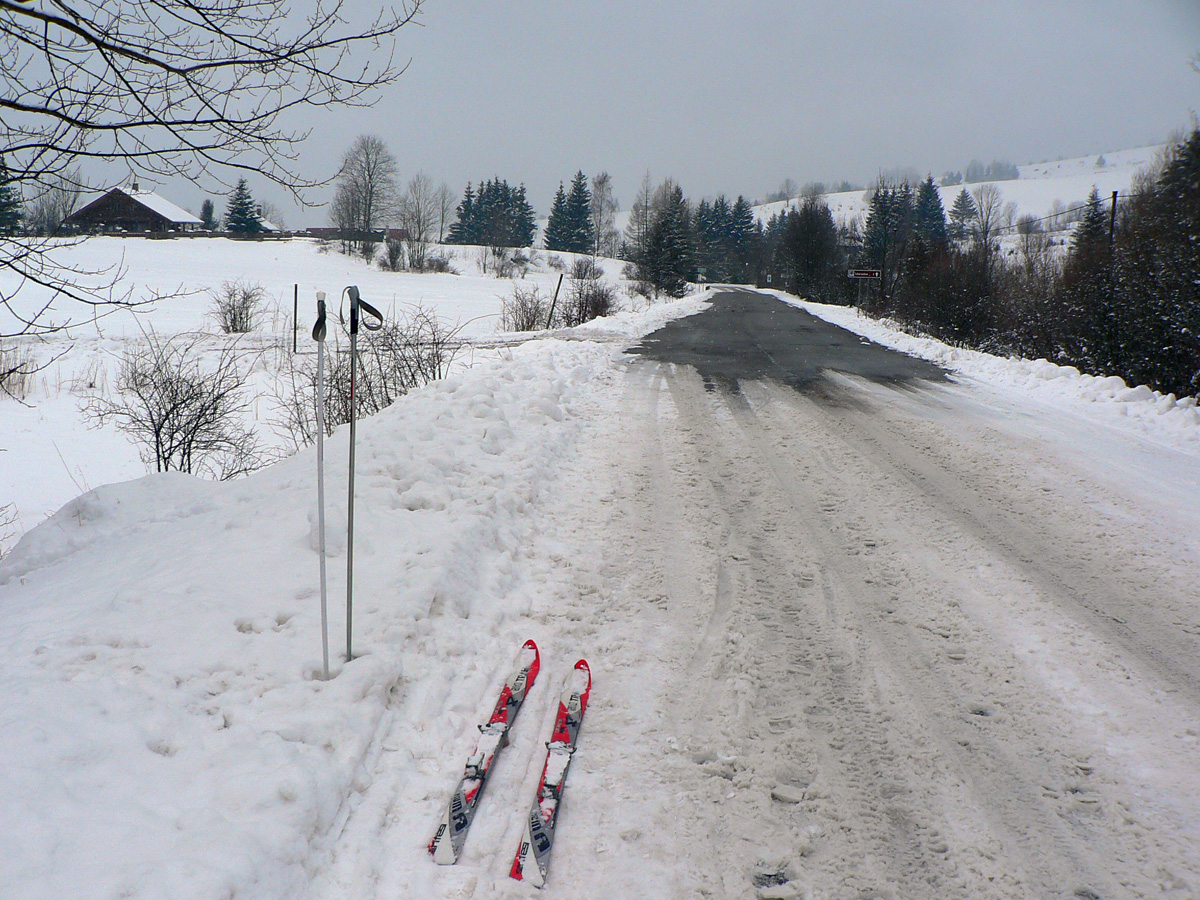 Zato lyžovačka lesom dole na cestu, to je parádna prachovačka. Ešte tak poznať miestne rúbane a skratky... Ale som rád, že vidím výstupovú stopu a tá ma vedie neomylne. Len dole, pár metrov nad asfaltkou, treba v lese opatrnejšie, konáre striehnu spod snehu. Na ceste pár cenťákov autami ujazdeného snehu, to je parádny odjazd až na horný koniec Lúžnej. Spoj mám o štvrťhodinku, tak sa to zas podarilo načasovať, už len to počasie keby konečne... Ale aj to raz bude :-)