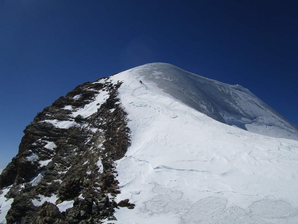 Bol som tu dnes štvrtý krát ale ľadovec a vrcholový hrebeň boli zatiaľ v najhoršom stave. Trhliny sú každý rok horšie. Napriek tomu sme stretli dvoch ľudí ktorí išli sami. Rovnako sme ale stretli viacero skupiniek ktoré to otočili a nevyšli až na vrchol, niektoré ani do sedla.