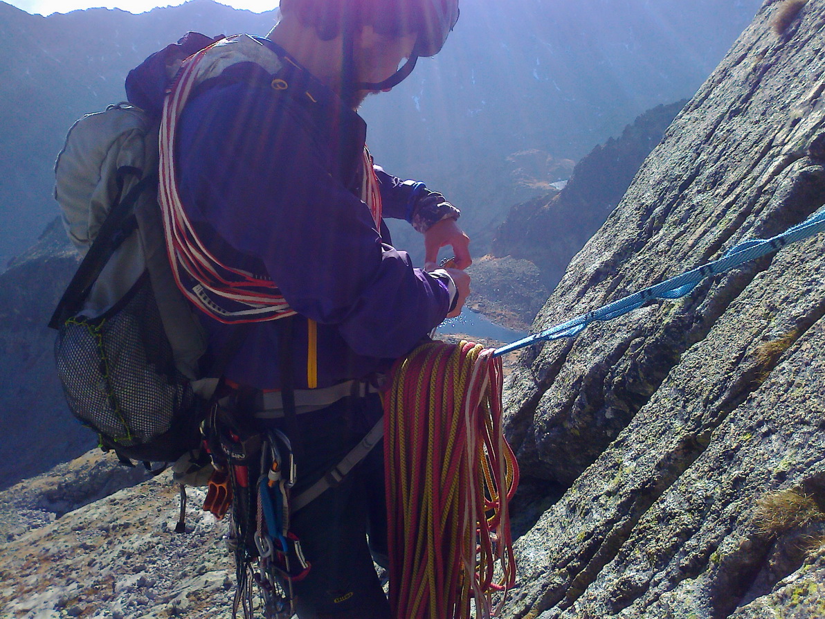 Na exponovaný tretí štand dolieza Sisa a Matúš už hľadá cestu v štvrtej dĺžke. Nie je to celkom jasné. Dĺžka je dlhá, strmá, miniem skoro všetko čo mám kým zaštandujem a zakričím dole na Sisu "Poď!"