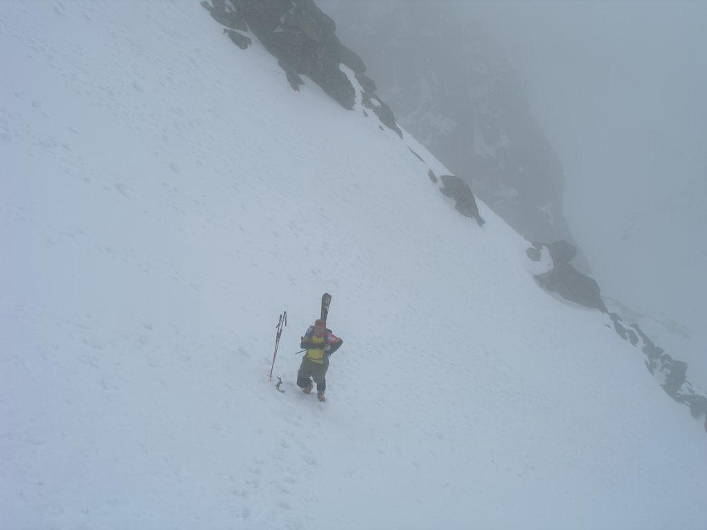 Tohtoročná jar s vynikajúcimi snehovými podmienkami doslova vyháňa do hôr. Nový výstroj znásobuje moje nadšenie a po pár sychravých dňoch využívame hneď ten prvý, ktorý sľubuje lepšie počasie. Cestou na Popradské sa nám podarí chytiť stop a o to viac si tam vychutnávame kávičku pri debate, kam ďalej. Prebieha tu kurz záchranárov, dnes sa teda budeme cítiť bezpečne. (Pri tej príležitosti si spomínam na nezaplatený šek z Alpenvereinu :)