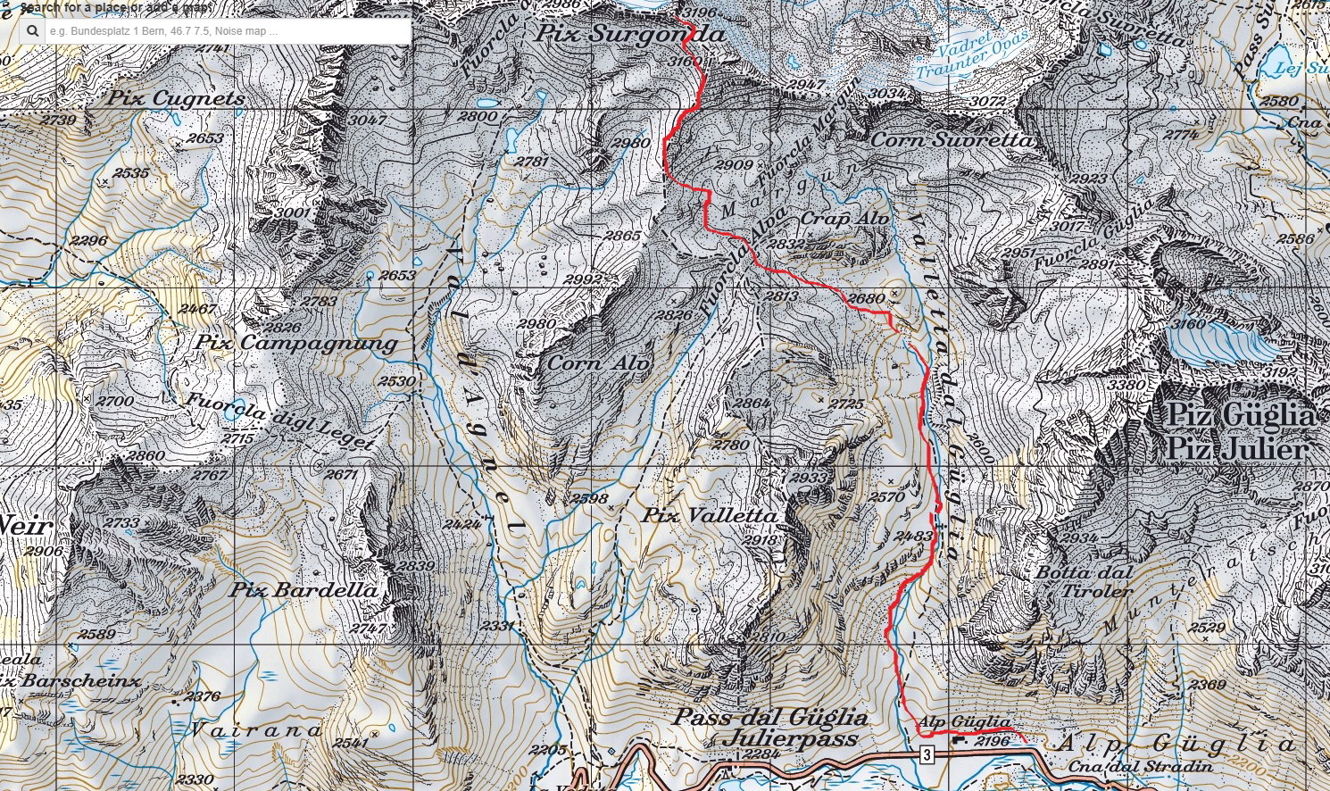 Aby sme sa ale stále nešúchali po tom istom zvolíme nástup nie od Hospizu ale o dolinku skôr od parkoviska (2196m.) z ktorého sa vyráža na Piz Lagrev opačným smerom. Odtiaľ stúpame najprv dolinkou Valletta Julier, neskôr sa prepletáme pomedzi kopčeky a jarky až pod vrcholový hrebeň Surgondy. Aj keď počas tejto túry nenašlapeme viac ako 1000 v.m. tak treba rátať s nejakým tým časom a dĺžkou. Najlepšie to ale uvidíte na prehľadných obrázkoch nafotených z protiľahlých kopčekov počas iných túr v tejto TOP oblasti.
