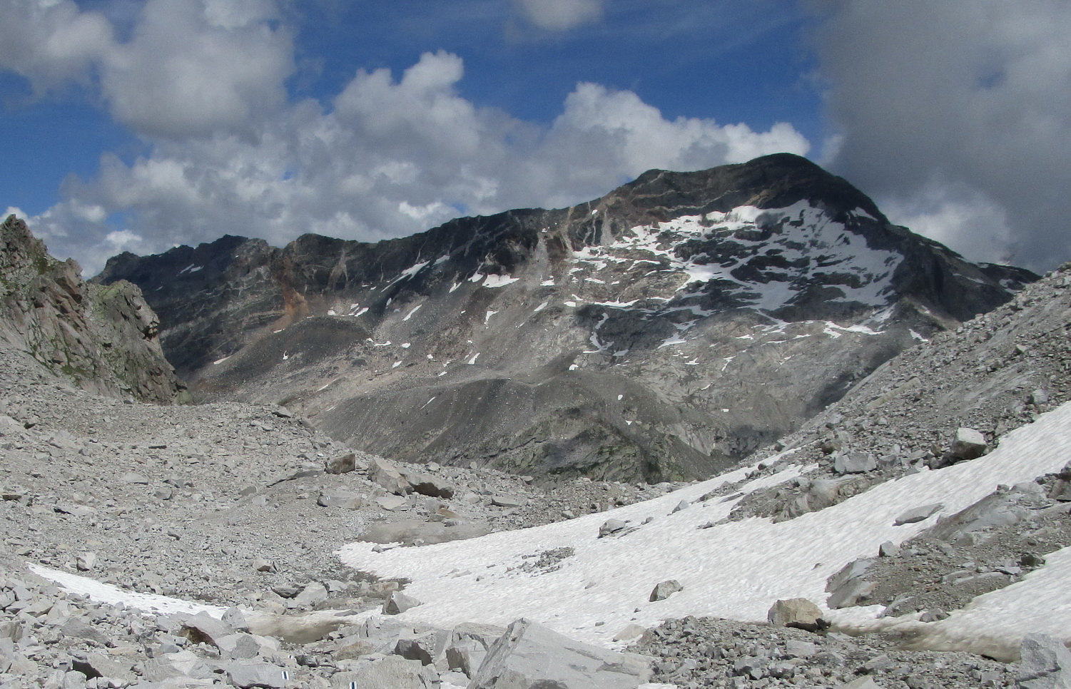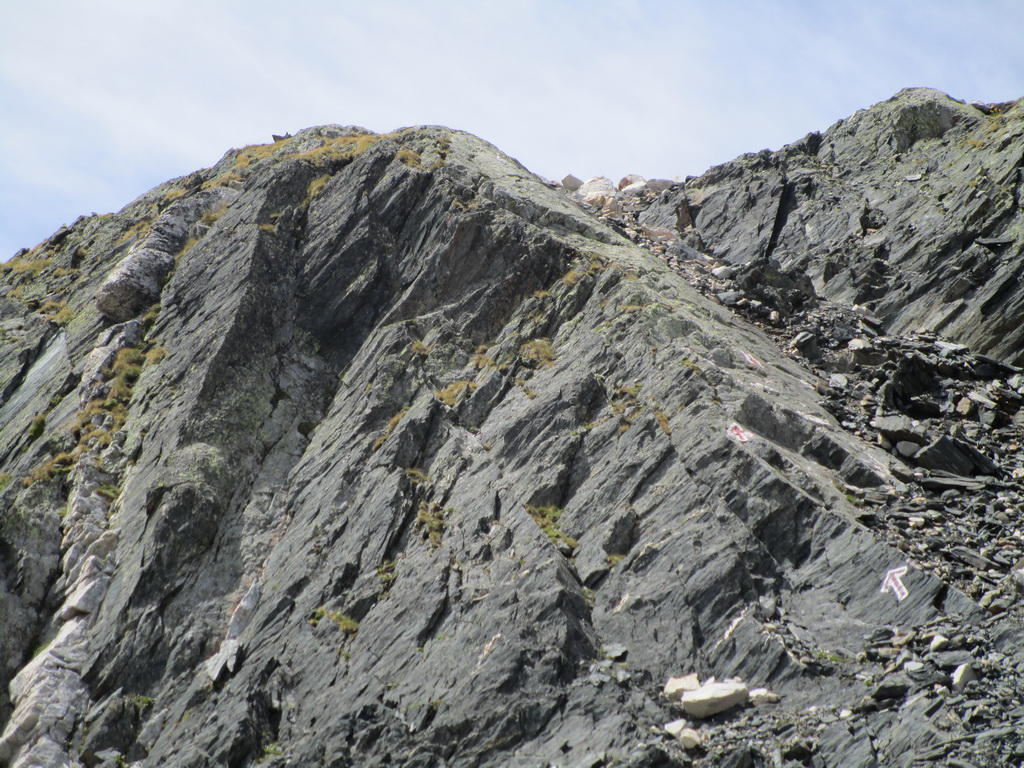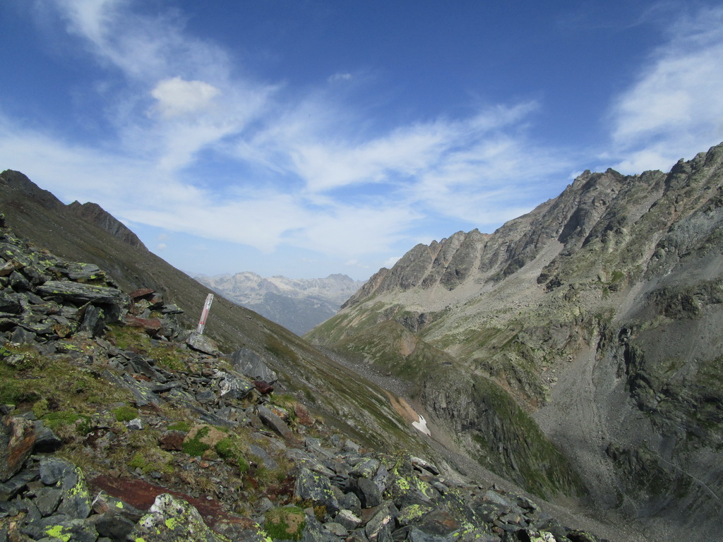 Na Talianskej strane chýba smerovník, dozvedám sa neskôr na chate, preto začnem zostupovať chodníkom do talianskej Val Malenco. Po chvíli si uvedomím, že asi nie som dobre a tak si to seknem svahom kde by mal byť správny chodník rovno hore. Nie hneď ale nájdem ho. Ďalej už je kvalitne značený.